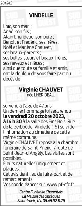 Madame Virginie CHAUVET née LHERIDEAU