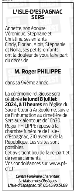 Décédé à Saint-Michel (16470, France) le dimanche 30 juin 2024 à l'âge de 93 ans