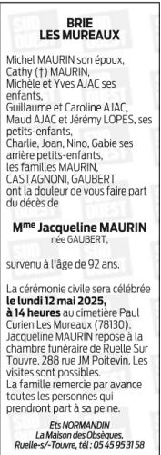 le samedi 3 mai 2025 à l'âge de 92 ans