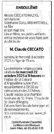 Décédé à Angoulême (16000, France) le mercredi 8 octobre 2025 à l'âge de 79 ans