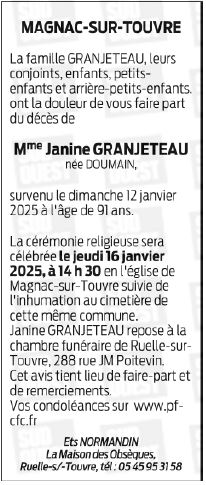 Veuve de Monsieur Rémi GRANJETEAU
