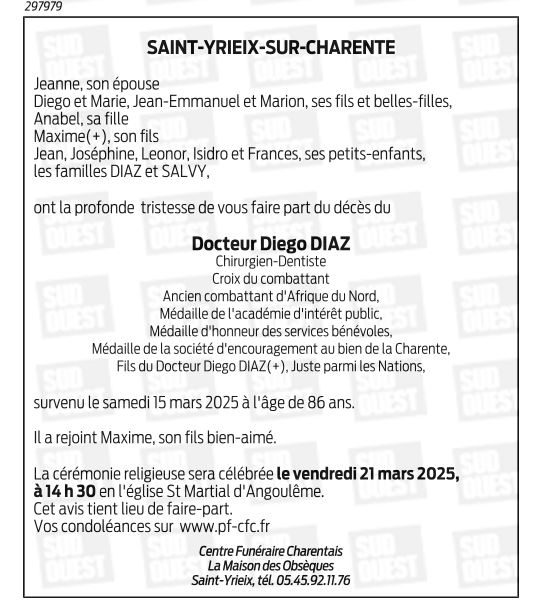 Epoux de Madame Jeanne DIAZ