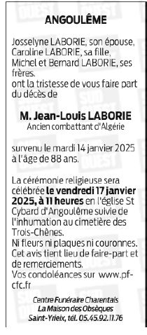 Décédé à Saint-Michel (16470, France) le lundi 13 janvier 2025 à l'âge de 88 ans