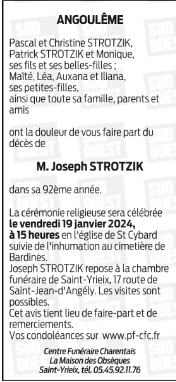 Veuf de Madame Pierrette Jeanine STROTZIK