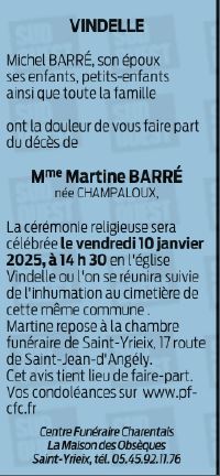 Madame Martine BARRÉ née CHAMPALOUX
