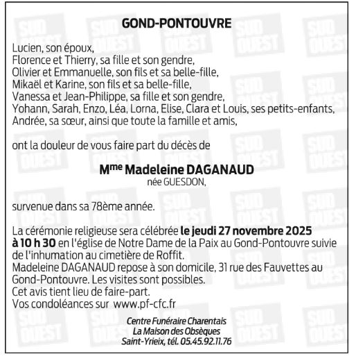 Epouse de Monsieur Lucien DAGANAUD