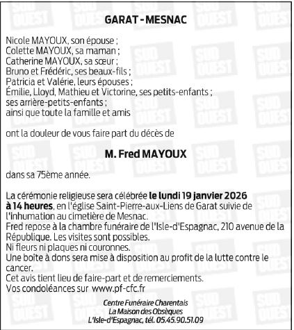 le jeudi 15 janvier 2026 à l'âge de 74 ans