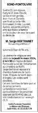 Décédé à Saint-Yrieix-sur-Charente (16710, France) le vendredi 8 mars 2024 à l'âge de 94 ans