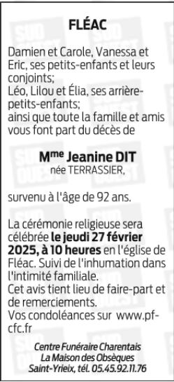le dimanche 23 février 2025 à l'âge de 92 ans