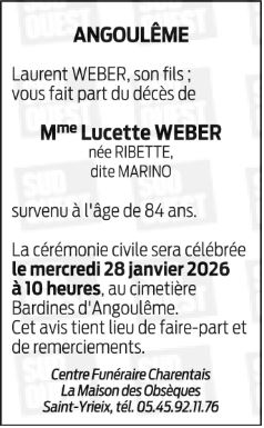 Madame LUCETTE WEBER née RIBETTE