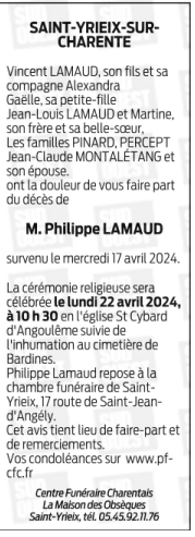 Décédé à Saint-Michel (16470, France) le mercredi 17 avril 2024 à l'âge de 63 ans