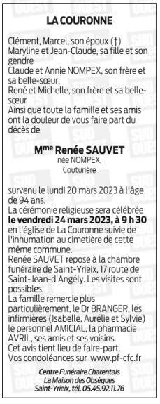 Madame Renée SAUVET née NOMPEX