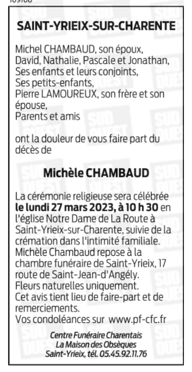 Epouse de Monsieur Michel CHAMBAUD