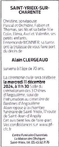 Décédé à Saint-Yrieix-sur-Charente (16710, France) le mercredi 4 décembre 2024 à l'âge de 70 ans