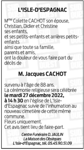 Epoux de Madame COLETTE CACHOT