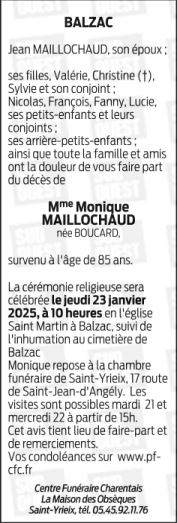 Madame MONIQUE MAILLOCHAUD née BOUCARD